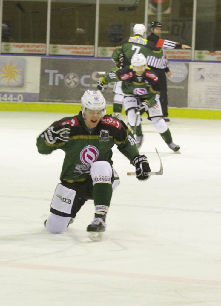So hätten die Pfaffenhofener vor der ersten Pause durchaus in Führung gehen können, ja vielleicht sogar müssen, doch blieben die Möglichkeiten allesamt ungenutzt. Daran konnte auch Neuzugang Stephan Trolda vorerst nichts ändern. Der erst während der Woche vom Oberligisten Schönheide zum Team gestoßen e Routinier konnte aber in einigen Situationen bereits andeuten, dass er mit seiner Erfahrung noch sehr wertvoll werden kann für die junge Mannschaft von Michael Dippold. So war.es J.C. Cangelosi vorbehalten, nach einem relativ ausgeglichenen ersten Drittel in einer eher mäßigen Partie, 38 Sekunden nach Wiederbeginn für den ersten Treffer des Abends zu sorgen.