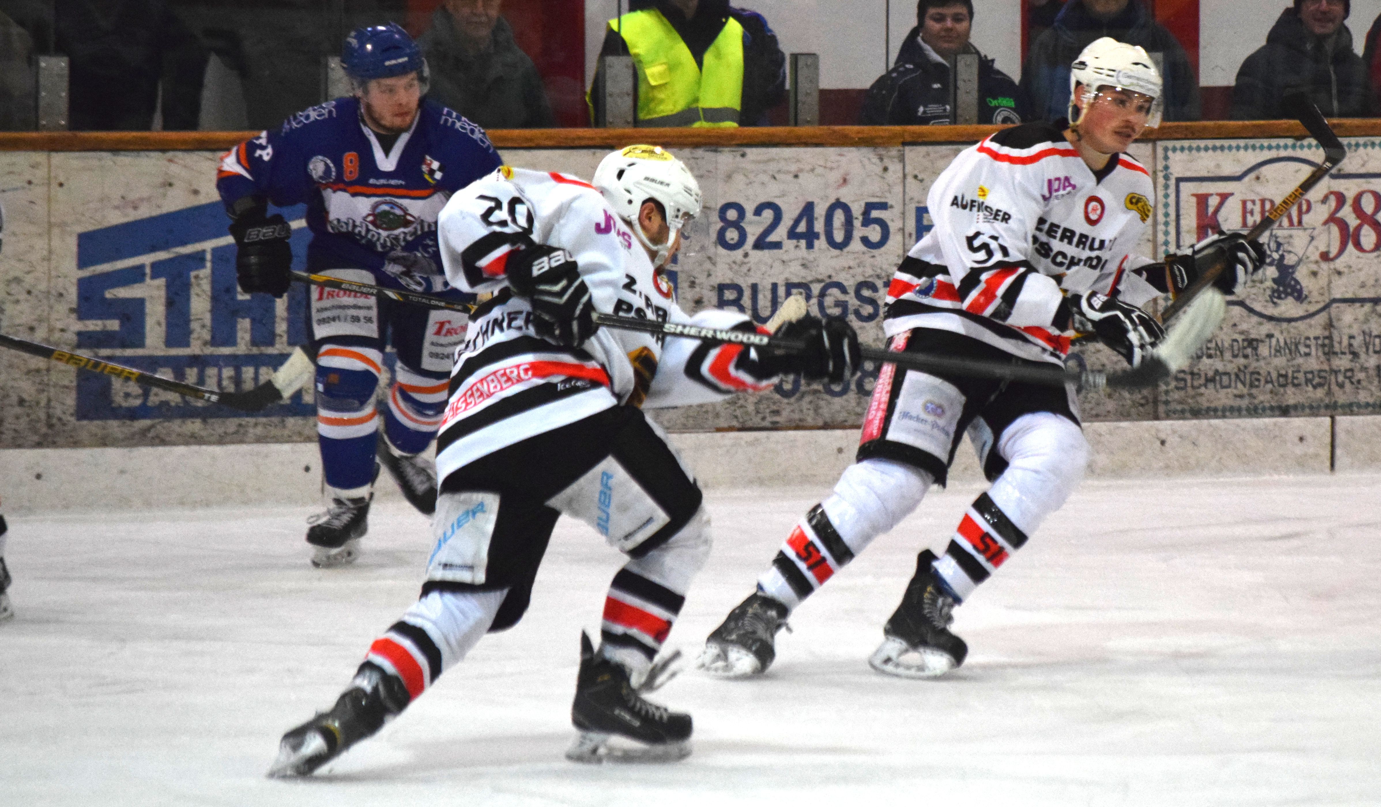 Schon im ersten Drittel war kein Unterschied auszumachen, welche Mannschaft in der Tabelle oben und welche unten steht. Miesbach hatte zwar in den Anfangsminuten etwas mehr vom Spiel und auch die erste Möglichkeit, dann aber erspielten sich die Hausherren zunehmend gute Chancen, konnten aber ihre ehemalige Mannschaftskameradin Franziska Albl im Tor der Gäste nicht überwinden. Da auch Patrick Weiner wieder einen starken Tag erwischte, blieb es zur ersten Pause torlos, auch wenn eine Führung des Außenseiters aufgrund des Chancenverhältnisses nicht unverdient gewesen wäre. Im zweiten Drittel schien die Partie dann aber doch den erwarteten Verlauf zu nehmen. Nach dem Ausfall ihrer beiden Mittelstürmer und einem Miesbacher Doppelschlag durch Stefano Rizzo und Florian Feuerreiter innerhalb von nur 10 Sekunden (27.), schien alles für den Tabellenführer zu sprechen.
