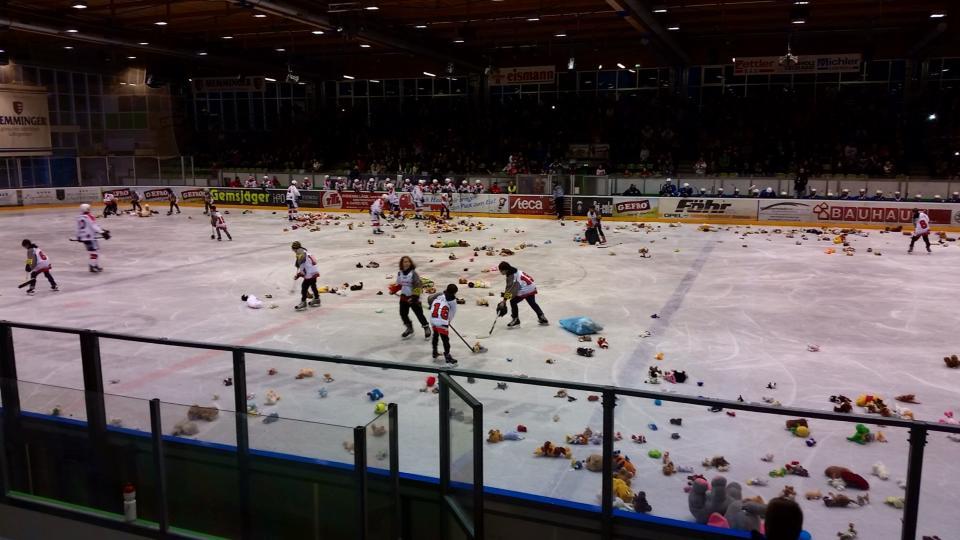 (Bayernliga-Memmingen) Der bayerische Eishockey-Vizemeister ECDC Memmingen hat mit der Wohltätigkeits-Aktion „Teddy Bear Toss“ am vergangenen Sonntag beim Heimspiel gegen Landsberg einen riesigen Erfolg gefeiert: Insgesamt 1244 (!) Kuscheltiere konnten eingesammelt und der Hilfsorganisation Humedica übergeben werden.