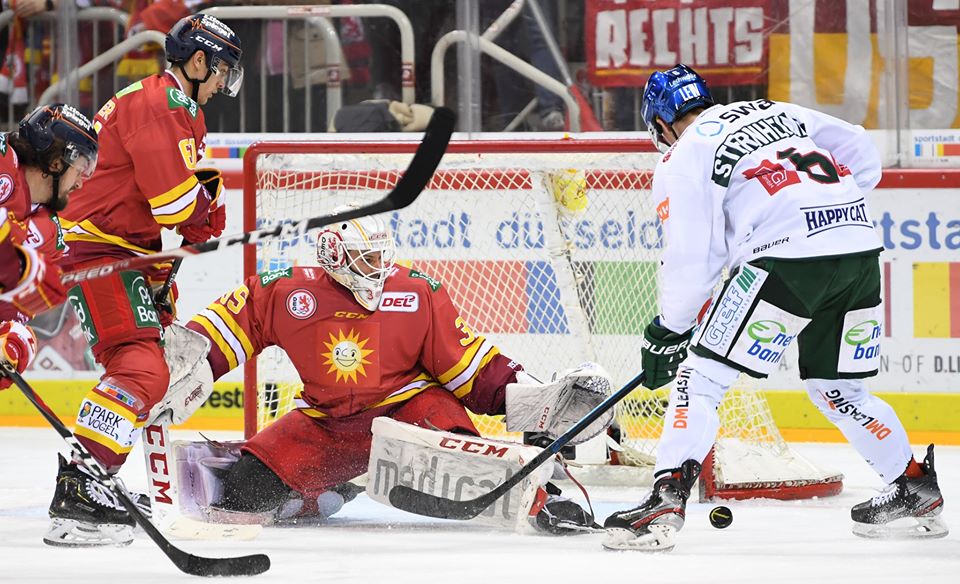 (DEL) (Hermann Graßl) Ein Brisantes Duell im Kampf um die heißbegehrten Playoff Plätze fand gestern am Rhein vor 5.535 Zuschauer zwischen dem Sechstplatzierten, der Düsseldorfer EG und dem Tabellenzehnten Augsburg statt. Die DEG setzte sich mit einem knappen 1:0 durch ein Tor von Alexander Barta durch.