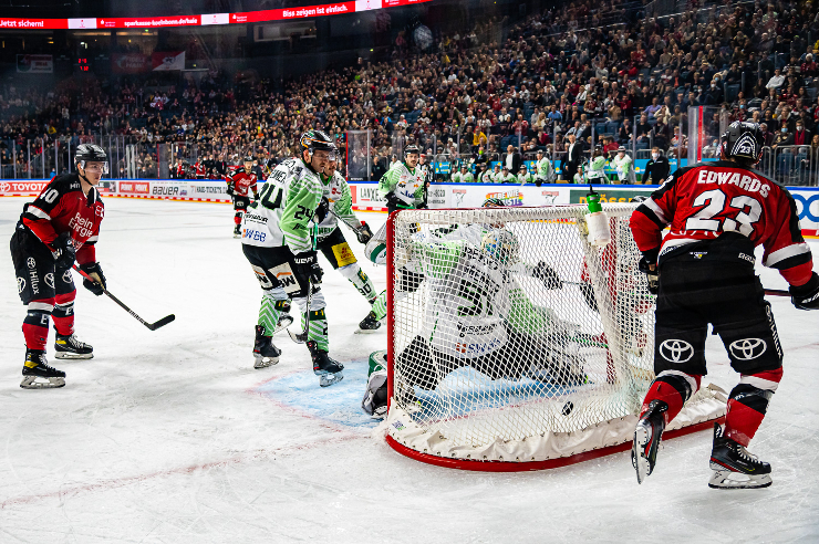 6:3 (50.) - Marcel Barinka allein im Slot. So viel Platz hatte er wohl nicht mal im letzten Training. Den springenden Puck von Ferraro verwandelte er direkt. 7:3 (53.) - Erneut konnte ein Kölner von den haarsträubenden Fehlern der Gäste profitieren. Marcel Müller bedankte sich und setzte den Schlusspunkt.