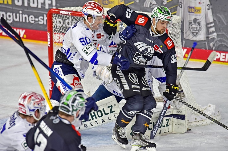 Strafen: Krefeld 10 Minuten, Schwenningen 12 Minuten