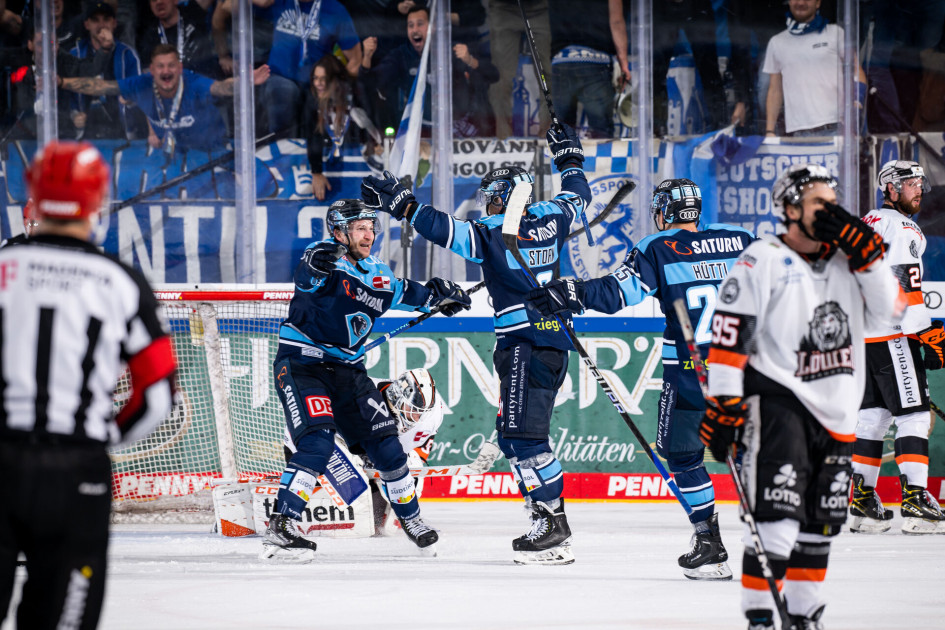 Und auch die Anfangsphase des Schlussabschnitts gehörte den Gästen. Zu Beginn konnten sie zwar zwei Powerplays nicht nutzen, kamen aber dennoch, auch bei Fünf-gegen-Fünf, regelmäßig zu Abschlüssen. Doch entweder stand Hildebrand im Weg oder die Panther verfehlten den Kasten des Aufsteigers, der selbst nur noch sporadisch vor Reich auftauchte. Höfflin hätte 45 Sekunden vor Ende der regulären Spielzeit um ein Haar für den SIeg gesorgt. Diesen sicherte schließlich Stachowiak in der Verlängerung als er 29 Sekunden vor Schluss den Puck in den Winkel donnerte.