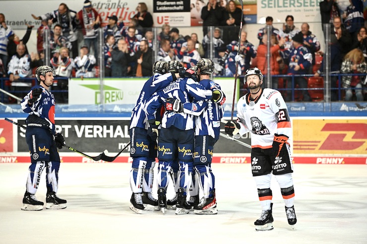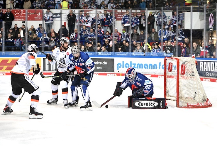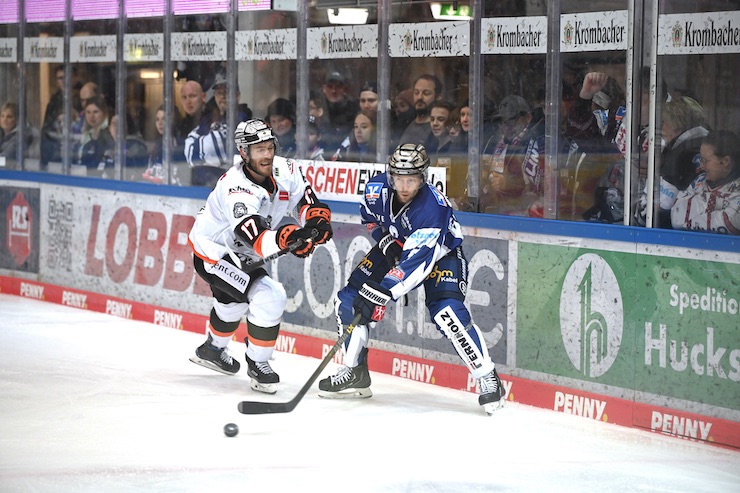PENNY-DEL (Iserlohn/PR) Nach dem Overtime-Win vor Jahreswechsel gegen die Adler aus Mannheim durften die Iserlohn Roosters auch ihr erstes Spiel in 2023 in der heimischen Balver Zinn Arena austragen, zu Gast waren die Löwen aus Frankfurt, die im alten Jahr zuletzt die Schwenninger Wild Wings mit 5:2 nach Hause schickten. Mit Blick auf die Tabelle war es das Spiel 11. gegen 09. und somit ein klassisches „Sechs-Punke-Spiel“. Entsprechend beherzt ging es am Montagabend in Iserlohn zur Sache, es war ein temporeiches, interessantes Spiel was mit Iserlohn am Ende einen effektiv spielenden und gut verteidigenden Sieger fand.
