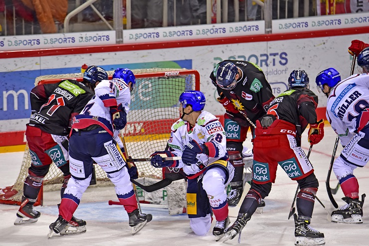 Wäre es noch einmal eng geworden, hätte man über diese letzte Szene aus dem Mitteldrittel sicher noch genauer sprechen müssen. Doch zum Glück brannte für die DEG in den letzten 20 Minuten nichts mehr an. Daran änderte auch nichts, dass Aubin einen Wechsel im Tor vornahm und nun Tobias Ancicka ins Rennen schickte. Im Powerplay waren die Berliner noch einmal gefährlich, erzielten aber dieses Mal kein Tor. Ansonsten kamen die Eisbären aber nicht so recht ins Rollen und hatten sogar Glück, dass die Rot-Gelbe einen 2:1-Konter über Eder und MacAulay nicht erfolgreich abschlossen (46.). Im Übrigen tat die DEG das, was man tun muss, um einen Zwei-Tore-Vorsprung über die Zeit zu bringen. Sie hielt ihr Spiel einfach, machte hinten dicht und riskierte nicht mehr viel. In der Schlussphase agierten die Gäste mit einem sechsten Feldspieler. Aber auch das änderte am Ergebnis nichts mehr.