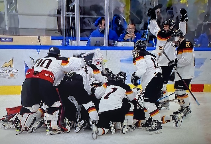 Nach der regulären Spielzeit stand es 4:4 unentschieden, nachdem die junge DEB-Auswahl (Jahrgänge 2006-2007) vier Mal einen Rückstand wett gemacht hatte und mit einem Schussverhältnis von 18:31 klar unterlegen war. Im Schlussdrittel holte Deutschland sogar einen doppelten Rückstand auf und in der anschliessenden Verlängerung konnte man noch eine Unterzahl von knapp 60 Sekunden schadlos überstehen und dann sensationell den 5:4 Siegtreffer durch den Red Bull Salzburg Akteur Elias Pul erzielen.