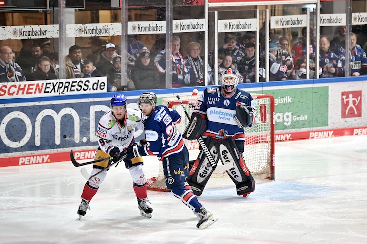 Doch Berlin sollte früh der Anschluss im letzten Drittel gelingen: Nach einem Defensivfehler der Roosters konnte White verkürzen (43.). Auch, wenn die Gäste aus der Bundeshauptstadt nun ordentlich Druck machten, schnell den Ausgleich nachlegen wollten, waren es die Sauerländer, die den nächsten Treffer markieren sollten: Nach einem Icing gab es das Anspiel im Defensivdrittel der Eisbären, das Poirier sauber gewann, womit er O´Connor an der blauen Linie ganz viel Zeit erkaufte. Der Verteidiger des IEC ging einige Schritte in Richtung des hohen Slots, von wo aus er mit einem platzierten Handgelenksschuss abschloss. Dieser flog stramm an Ancicka vorbei in die Maschen, weil gleich zwei Roosters Stürmer vor dem jungen Eisbären-Goalie den Screen setzten (47.). In der Folge versuchte Berlin noch einmal alles, fuhr wütende Angriffe auf den Kasten der Sauerländer, die große Möglichkeit sollte aber versagt bleiben, unter anderem auch trotz Überzahlsituation nach einer kleinlichen Strafe gegen Daugavins, in der die Hausherren sehr gut verteidigten (51.). Und trotz der Sechs-Gegen-Fünf-Möglichkeit, knapp drei Minuten  vor der Schlusssirene, in der lediglich Poirier in der letzten Spielminute mit dem Schuss ins verwaiste Eisbären-Gehäuse alles klar machen sollte. Unter dem Strich steht ein verdienter 4:1 Heimerfolg, weil die Roosters einen Start nach Maß erwischten und im weiteren Verlauf der Partie clever und effizient spielten und weil Andy Jenike im Tor des IEC einen herausragenden Nachmittag erwischte, mit einer starken Fangquote von 95,7% zu überzeugen wusste und weil seine Vorderleute äußerst konzentriert verteidigten.
