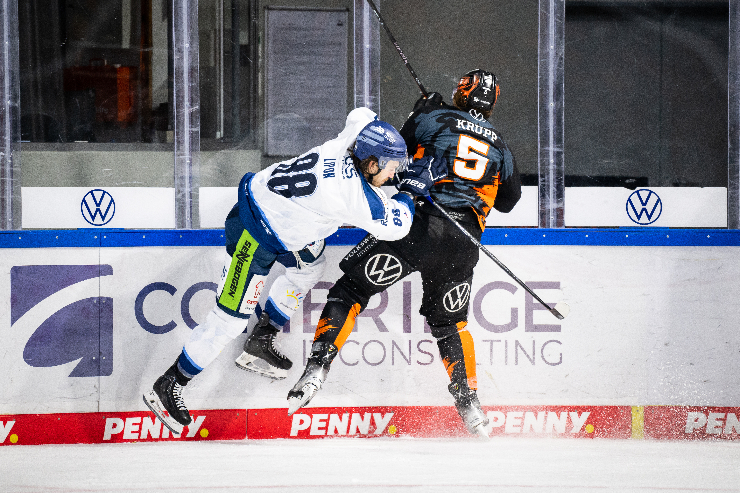 Keiner wollte beim Zweikampf klein beigeben. Dominik Bittner für die Grizzlys: “Wir sind jetzt besser aus der Kabine gekommen. Das ist ein energiereiches Spiel, das auch von Fehlern lebt. Dennoch spielen beide Teams taktisch diszipliniert. Ja wir haben Playoffs und da nimmt die Härte auch mal zu.”