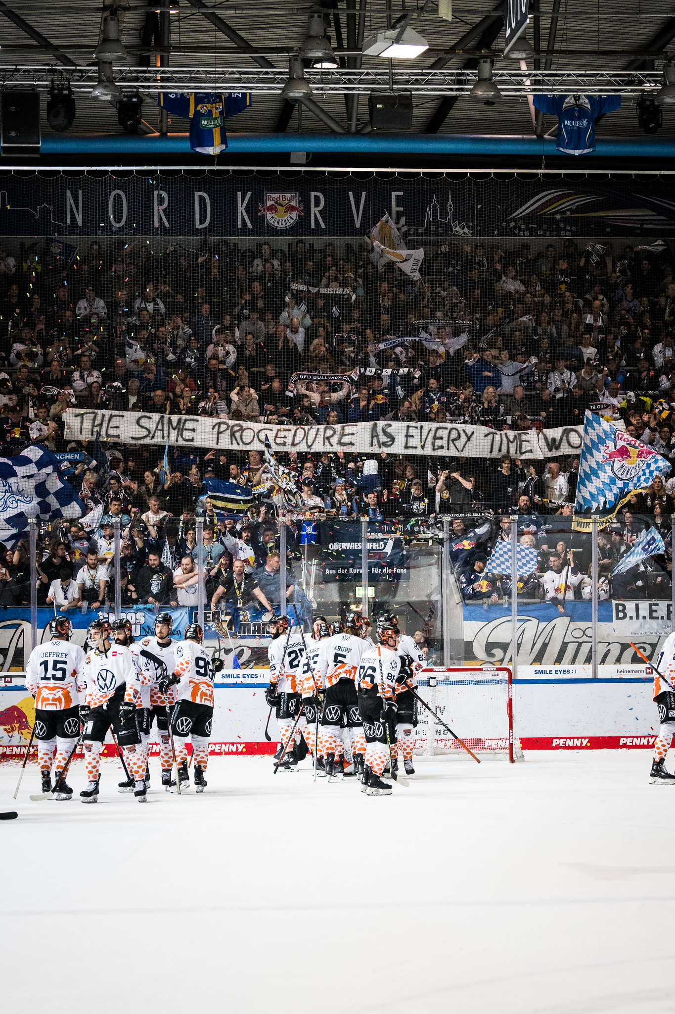 Unter dem frenetischen Jubel der Fans am Oberwiesenfeld machten die Hausherren im zweiten Drittel alles klar und standen bereits nach der Hälfte der Partie mit einem Bein im DEL-Finale 2022/2023. Die Niedersachsen konnten zwar einen guten Start hinlegen, doch dann folgten drei Powerplaytore der Red Bulls von Chris DeSousa, Trevor Parkes und Patrick Hager, nachdem Jordan Murray eine 5 Minuten + Spieldauer Disziplinarstrafe erhalten hatte.