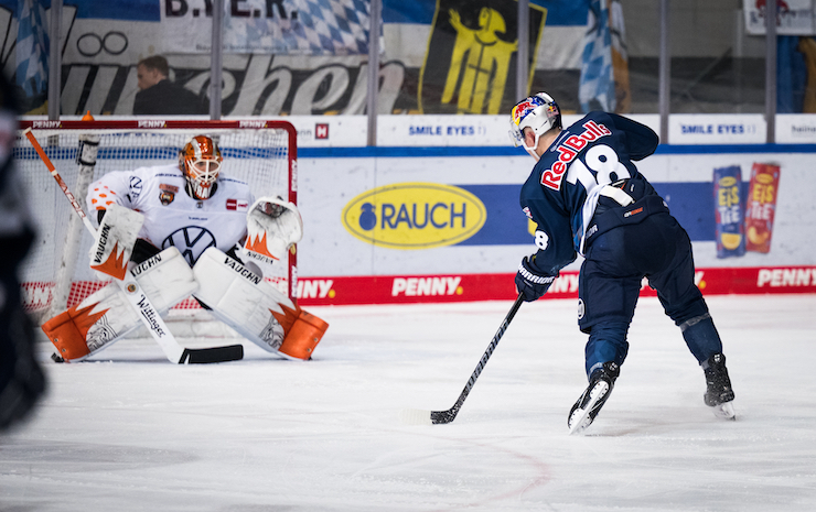 München kam fast wie die "Feuerwehr" aus der Kabine und drückte von Beginn an auf das Tor von Dustin Strahlmeier. Bereits in der 3. Minute zahlte sich das aggressive Forechecking der Red Bull aus, denn nach einem Puckgewinn legte Maksymilian Szuber mustergültig auf Justin Schütz auf, der zum 1:0 durch die Beine von Strahlmeier traf.
