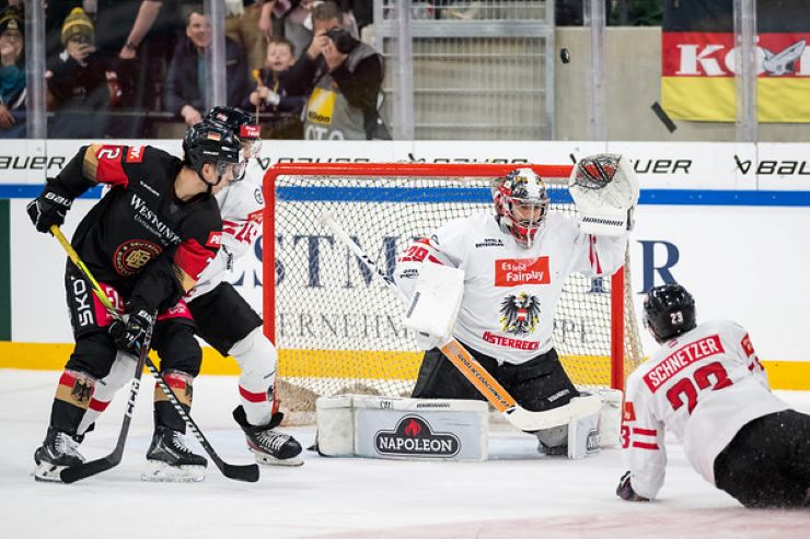 Headcoach Harold Kreis rotierte heute und stellte Arno Tiefensee ins Gehäuse, der sich bald dem ersten Powerplay der Österreicher erwehren musste, aber gegen den Führungstreffer durch Lukas Haudum in der 7. Spielminute machtlos war. Dieses frühe Tor gab den Gästen sichtlich Auftrieb, die in den ersten zehn Minuten weitgehend tonangebend waren.