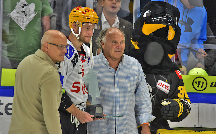 Krefeld gelang nicht mehr viel und so konnte im Anschluss an das Spiel der Fischtown-Kapitän Jan Urbas die Siegertrophäe von KEV-Ehrenkapitän und Pokal-Hersteller Uwe Fabig sowie Krefeld Pinguine Geschäftsführer Peer Schopp entgegen nehmen.