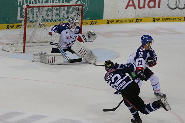 Auch im letzten Abschnitt drängten die Hausherren mit Macht auf den Ausgleich. Doch wie zuvor war Dennis Endras im richtigen Moment gegen Brandon Buck (41.) zur Stelle. Das Team von Larry Huras machte massiv Druck, doch die Adler hielten dagegen. Sinan Akdag, hatte in der 44. Minute die Chance zum 3:1, sein Schuss traf aber nur das Außennetz. Ähnlich erging es auch Christopher Fischer in Überzahl, dessen Schlagschuss (44.) im Gewühl vorm Tor hängen blieb. Kaum war die Strafe gegen Ingolstadt abgelaufen, erarbeiteten sich die Panther die nächsten Chancen über Jared Ross (45./54.), Ryan MacMurchy und Derek Hahn (52.). Bei Dennis Endras war aber jedes Mal Schluss, so dass es beim 2:1 für die Adler blieb.