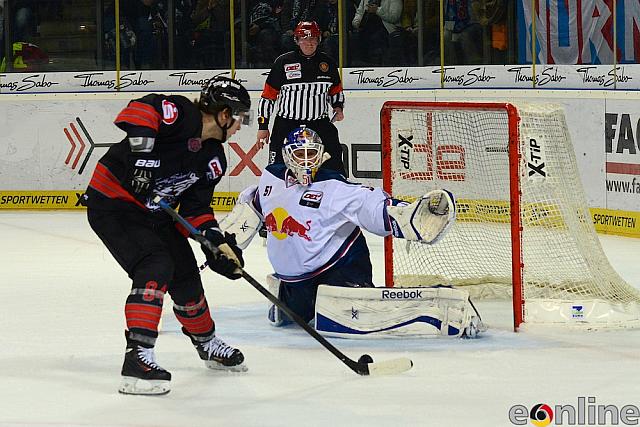 (DEL-München) Nach zehn Derbysiegen in Folge muss sich der EHC Red Bull München bei den Thomas Sabo Ice Tigers in einem dramatischen Duell knapp mit 4:5 nach Penaltyschießen (1:0|1:3|2:1|0:0|0:1) geschlagen geben. Nach der Führung durch Daniel Sparre zog Nürnberg im zweiten Drittel auf 3:1 davon, doch Tore von Daryl Boyle, Daniel Sparre und Geburtstagskind Yannic Seidenberg drehten das Spiel wieder zu Gunsten der Münchner. Patrick Reimer glich jedoch 22 Sekunden vor dem Ende aus. Im Penaltyschießen traf nur Corey Locke zum Sieg für die Franken.