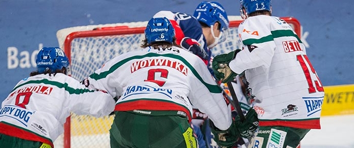 Nach der 0:4-Niederlage in Nürnberg vor drei Tagen wartete am Freitagabend in Augsburg keine minder schwere Aufgabe auf die Mannen von Headcoach Geoff Ward, der gegen den Drittletzten auf die angeschlagenen Jamie Tardif und Glen Metropolit verzichten musste. Dafür stand Matthias Plachta nach abgesessener Sperre wieder im Kader. Den etwas besseren Start in der Partie erwischten die Augsburger, die nach zwei Minuten durch Adrian Grygiel erstmals gefährlich vor dem Tor von Dennis Endras auftauchten, doch der Schuss des Panther-Stürmers war zu unplatziert. Es schien wie ein Weckruf gewesen zu sein, denn fortan waren die Adler im Spiel und hatten das Geschehen auf dem Eis auch fest im Griff, hochkarätige Chancen blieben aber eher Mangelware. In der fünften Spielminuten sah Adler-Cheftrainer Ward einen Konter der Hausherren über Luigi Caporusso, der seine Farben mit einem Tor der Kategorie „Zufallsprodukt“ in Führung brachte – die Schreibe sprang vom Schlittschuh eines Adler-Spielers unglücklich ins Tor. Unbeeindruckt von diesem Gegentreffer spielten die Adler weiter nach vorne und konnten sich durch sehenswerte Kombinationen auch schnell im Drittel der Panther festsetzen, aber Kai Hospelt (15.), Jochen Hecht (19.) und Kurtis Foster (20.) scheiterten am glänzend aufgelegten Panther-Goalie Chris Mason.