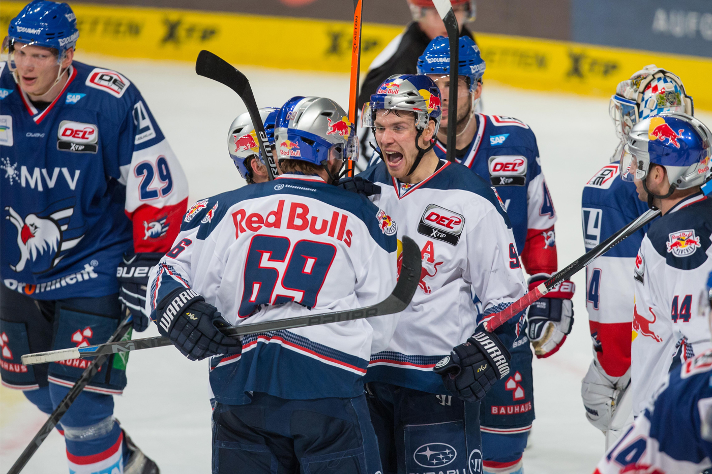 Im Schlussabschnitt drückten die Mannheimer die Gäste in deren Verteidigungszone. Offensiv kam von den Red Bulls in dieser Phase nicht mehr viel, dafür blieb die Mannschaft von Don Jackson bei Kontern gefährlich. Die Adler hatten durch Frank Mauer und Andrew Joudrey gute Chancen, sie scheiterten jedoch beide am gut aufgelegten Niklas Treutle. In der 53. Minute war der Münchner Schlussmann dann machtlos, als Sinan Akdag aus dem Bullykreis auf 4:5 verkürzte. Die Adler warfen nun alles nach vorne. Der EHC verteidigte allerdings mit großem Einsatz und ließen keine Großchancen mehr zu und schaukelten so den knappen Vorsprung über die Zeit.