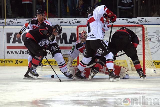 Die beste Möglichkeit hatte aber Yasin Ehliz in der 19. Spielminute nach einem feinen Doppelpass mit Steven Reinprecht. Reinprecht legte Ehliz den Puck genau in den Lauf, der junge Tölzer zog mit Tempo zum Tor und vorbei an einem Kölner Verteidiger, scheiterte dann aber an Danny aus den Birken. 37 Sekunden vor Drittelende waren es die Gäste, die zum ersten Mal jubeln durften. Mike Iggulden legte den Puck ab an die blaue Linie, Chris Minard zog ab, Jamie Johnson stand vor dem Tor und fälschte unhaltbar für Jenike zum 0:1 ab. Im zweiten Drittel fanden die THOMAS SABO Ice Tigers jedoch schnell eine Antwort. In der 23. Minute gelang den Schützlingen von Martin Jiranek auch der verdiente Ausgleich. Patrick Buzas fuhr mit der Scheibe und viel Tempo ins Kölner Drittel und spielte quer vors Tor zu Alexander Oblinger, der aus den Birken zu einer Parade mit den Schonern zwang, Jason Jaspers setzte nach und brachte den Puck zum 1:1 über die Linie. Die erneute Antwort der Haie ließ aber nicht lange auf sich warten. In der 26. Minute nutzten sie eine Überzahlsituation eiskalt aus. Charlie Stephens fälschte einen Schuss ab, Jenike musste abprallen lassen und Ryan Jones sorgte im Nachfassen für das 1:2.