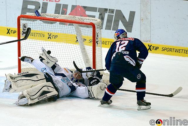 Nach dem Seitenwechsel wurde es dann eng für die Münchner. In Unterzahl musste Garrett Roe nach einem Schlägerbruch fast eineinhalb Minuten ohne Stock verteidigen. Die Box der Red Bulls stand allerdings sicher und ließ nur einen gefährlichen Schuss von Jerome Flaake aus zentraler Position zu (22.). Danach durfte sich das Team von Don Jackson im Powerplay versuchen. Ab der 24. Minute spielte der Tabellenzweite – mit kleinen Unterbrechungen – fast zehn Minuten in Überzahl, phasenweise sogar mit zwei Spielern mehr auf dem Eis.
