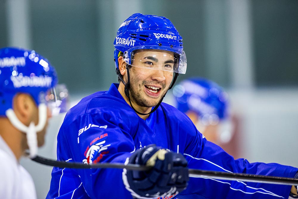 (Foto: Mannheim Adler / Brandon Yip ím ersten Training)