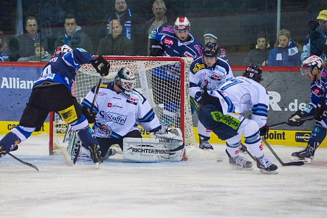 Und wie schon bei den Eisbären erwischte der AEV einen tollen Start, denn nach genau 90 Sekunden konnten die Zuschauer erstmals jubeln. Grygiel fälschte einen Schuss von Bettauer unhaltbar ab und Markus Janka im Gästetor hatte keine Abwehrchance (2.).