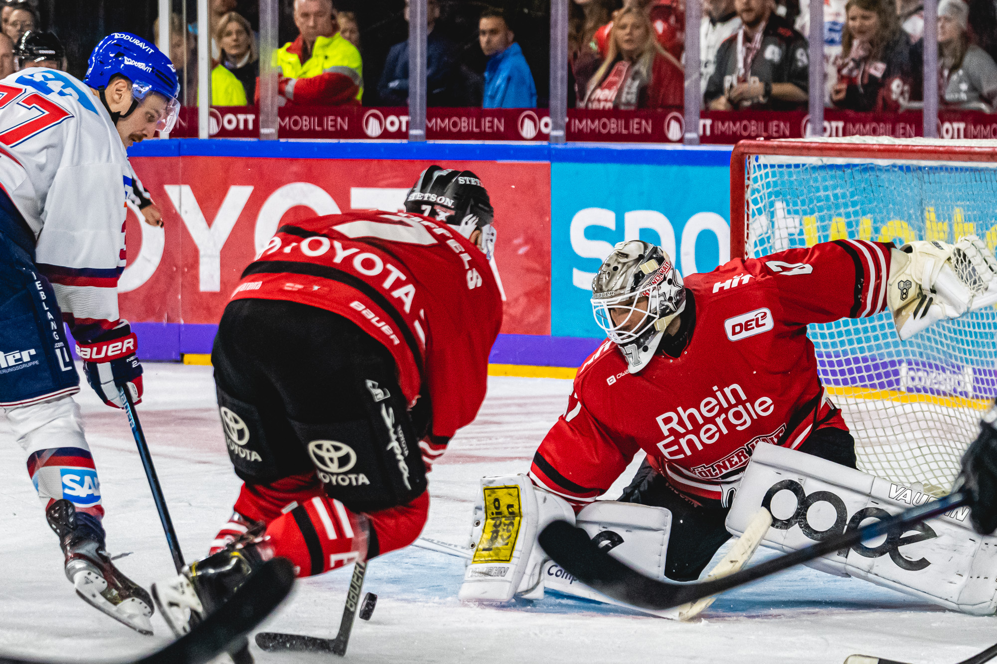 Es fehlten auf Kölner Seite weiterhin Moritz Müller und Gustaf Wesslau verletzungsbedingt. Im Vorfeld des Spiels stellte Mike Stewart die Angriffsreihen um. Die Offensive und auch die Torausbeute der letzten Spiele zeigten Schwächen, so dass Stewart diesen Schritt wählte, um mehr Reize in der Offensive zu setzen.