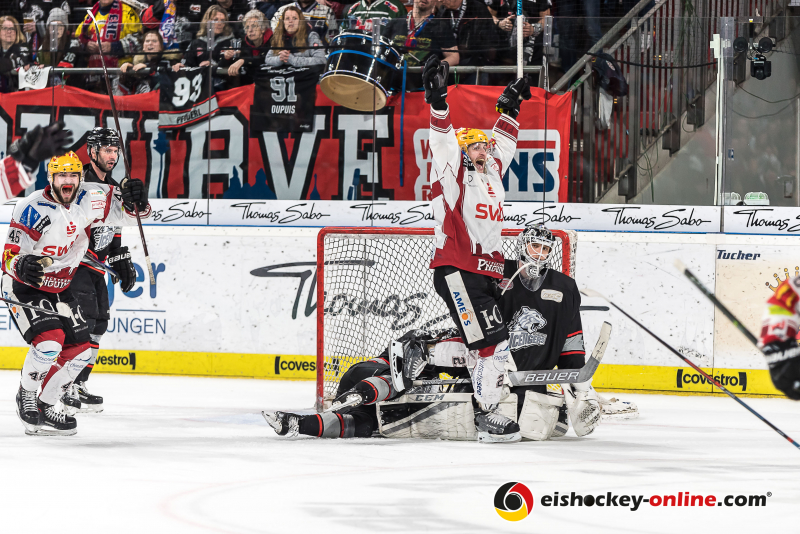 Düsseldorf antwortete mit wütenden Angriffen, ließ aber im Abschluss die nötige Konsequenz vermissen. In der 48. Spielminute keimte bei den Gästen nochmals Hoffnung auf: Oliver Roy schien schon geschlagen, auf der Linie klärte aber David Stieler für seinen Schlussmann. Direkt im Anschluss wanderten kurz nacheinander je ein Düsseldorfer und ein Augsburger auf die Strafbank. Bei Vier-gegen-Vier agierten die Hausherren erneut besser und erhöhten auf 5:0. Simon Sezemsky hielt von der blauen Linie drauf und brachte das Curt-Frenzel-Stadion zum beben.