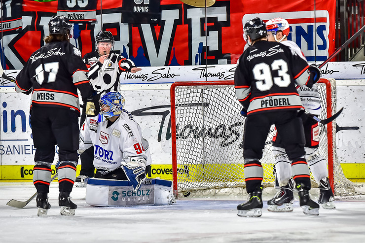 Die Gäste waren im Spitzenspiel sofort im Spiel und waren vom ersten Bully weg das optisch überlegene Team. Olivier Roy parierte beispielsweise bei einem Alleingang von David Wolf gleich zweimal herausragend (5.) und konnte sich auch sonst immer wieder auszeichnen. Zudem kratzte Lamb den Puck nach einem Pfostenschuss von Markus Eisenschmid vor dem einschussbereiten David Wolf noch vor der Linie (13.).