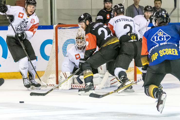 Mit den von Tom Pokel durchgewürfelten Sturmreihen, versuchten die Tigers wieder mehr Struktur ins Spiel zu bringen. Das sah auch erst einmal gut aus. Dylan Wruck hatte schon früh die Führung auf dem Schläger und später vergaben Williams und Loibl ebenfalls hundertprozentige Chancen. Die Gäste kamen erst gar nicht zu solchen Möglichkeiten, führten aber dennoch mit 0:2 zur Pause. Der erste Treffer der Panther war sehr glücklich. Der Puck sprang von hinter der Torlinie an den Schoner von Sebastian Brandl und direkt ins Tor. Zugerechnet wurde der Treffer Daniel Schmölz (5.). Wenig später ging Thomas Vogl vor der Tor nur zögerlich zu Werke und David Stieler (10.) konnte den zweiten Treffer erzielen. Die Tigers wirkten etwas betroffen, krempelten aber die Ärmel wieder hoch und hatten noch einige gute Spielzüge auf Lager.
