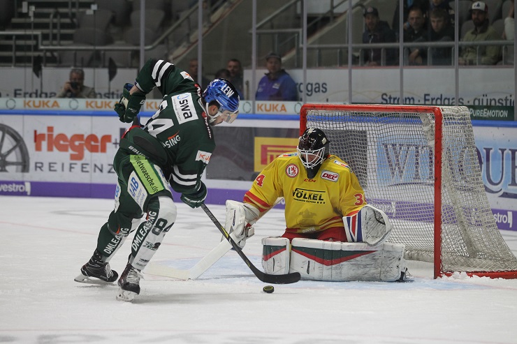 Kurz zuvor hatte Jeremy Welsh bereits das schwäbische Gehäuse einem Härtetest unterzogen. Insgesamt verzeichnete das Team von Cheftrainer Mike Pellegrims ein deutliches Chancenplus – dennoch ging es mit einem Rückstand in die erste Unterbrechung. Kurz vor Ende des Drittels schlenzte Thomas Holzmann die Scheibe – zugegebenermaßen sehenswert – aus spitzem Winkel zur Panther-Führung ins Netz.