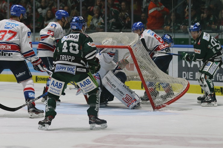 Das Auftaktdrittel gehörte nahezu komplett den Gastgebern. Die logische Konsequenz war das 1:0 durch Jason Jaspers nach elf Minuten. Im weiteren Verlauf von Durchgang eins hatten die Gäubodenstädter gehörig Glück, denn Justin Florek traf nur den Pfosten des von Drew MacIntyre gehüteten Tores. Dieser hielt bravourös, ihm war es zu verdanken, dass es nach 20 Minuten "nur" 0:1 stand.
