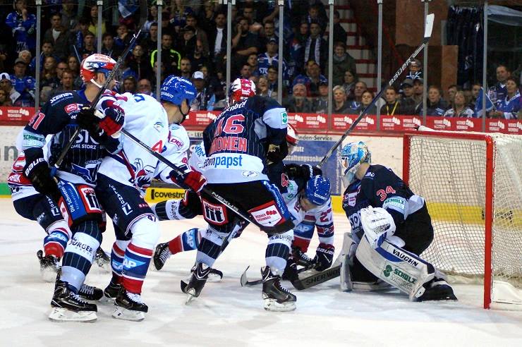 Was den Eishockeysport für die Anhänger so interessant macht, ist für Trainer, Spieler, Manager und vor allen Dingen Torhüter ein Graus. Das Motto „Offensive wins games, defense wins championships“ griff so gut wie gar nicht. Immerhin: Jochen Reimer vom ERC Ingolstadt durfte sich im allerersten Saisoneinsatz für seinen neuen Club (am Freitag hatte Timo Pielmeier gespielt) über seinen erstes „zu Null“ freuen – und das beim amtierenden Deutschen Meister EHC Red Bull München.