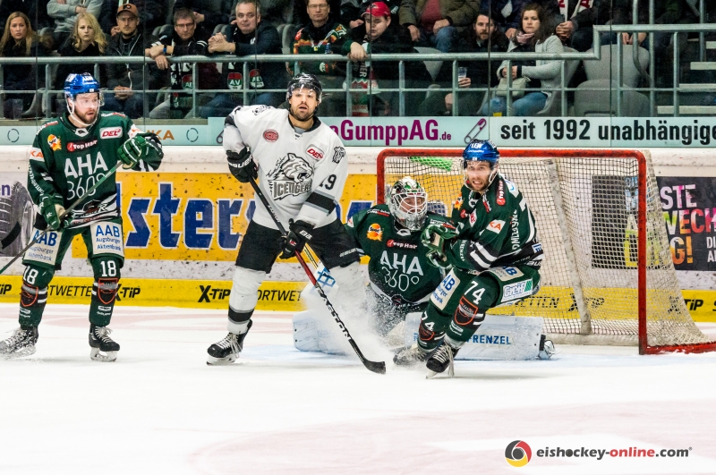 Die Panther gingen personell unverändert ins Spiel, fanden sich zu Beginn aber - anders als in Spiel vier - erst einmal in der Defensive gefordert. In den ersten sechs Minuten mussten die Gäste gleich dreimal in Unterzahl ran, verteidigten aber stark und ließen keinen Treffer zu. Chancen für die Ice Tigers waren zwar durchaus vorhanden, aber entweder ging der Puck knapp neben das Tor oder Ben Meisner war zur Stelle. Deutlich effizienter präsentierten sich die Augsburger, denn gleich der erste gefährliche Schuss führte zum Torerfolg.