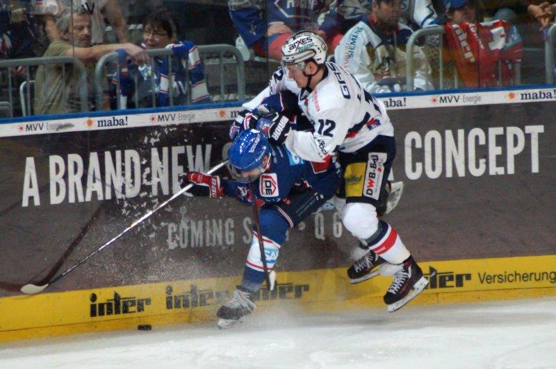 Nach der ersten Pause war noch eine knapp 90 Sekunden lange doppelte Unterzahl zu überstehen, doch danach ging es bergauf. Die Quadratestädter arbeiteten sich ins Spiel zurück, agierten plötzlich souveräner und spielstärker als noch im ersten Abschnitt. Chad Kolarik bewies wieder einmal den richtigen Riecher, als er beim Schlenzer von Carlo Colaiacovo noch den Schläger reinhielt und die Scheibe zum 1:3 ins Berliner Tor abfälschte (29.). Und nur zwei Minuten später nahm Matthias Plachta die springende Scheibe aus der Drehung direkt und markierte den Anschlusstreffer. In Unterzahl traf Thomas Larkin nur den Pfosten (33.), genauso wie eine Minute später Chad Kolarik in Überzahl - der Ausgleich lag in der Luft, wollte aber nicht fallen. Auf der anderen Seite hatten die Adler Glück, als die Scheibe nach Daniel Fischbuchs Versuch neben dem Pfosten, aber vor der Torlinie liegen blieb - MacIntyre reagierte am Schnellsten und sicherte den Puck (37.).