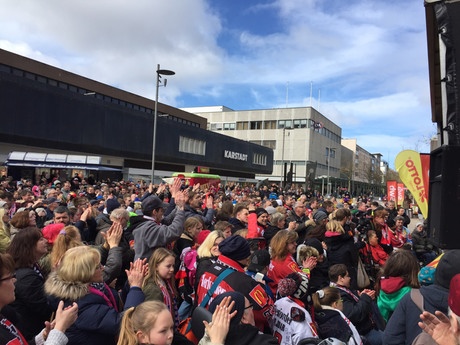 Kurz nach 13:00 Uhr war es dann soweit, das Team der Fischtown Pinguins betrat unter lautem Beifall die Bühne, nun gab es kein halten mehr. Ob „Wir sind stolz auf unser Team“ oder „Bremerhaven Ole“ alles wurde nun gesungen und die Mannschaft staunte nicht schlecht, so viele Fans waren da.