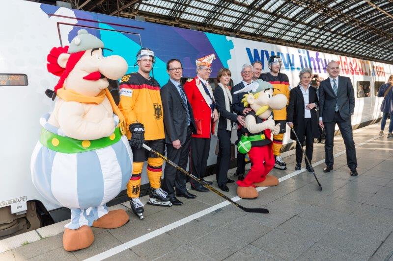 Mit an Bord waren unter anderem die Kölner Oberbürgermeisterin Henriette Reker, Franz Reindl, Präsident des Deutschen Eishockey-Bundes e.V. (DEB) und des WM-Organisationskomitees sowie Bruno Dierickx, Marketing- und Vertriebsdirektor von Thalys. Feierlich begrüßt wurden die Reisenden am Gleis von einer Abordnung der „Roten Funken“, dem Traditionsverein des Kölner Karnevals.