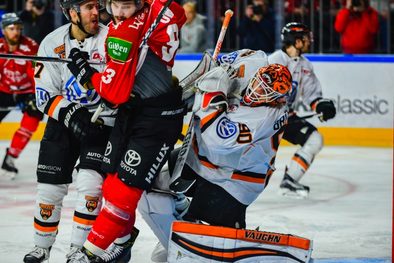 In der Ecke setzte sich Drew LeBlanc stark durch, bewies überragende Übersicht und bediente Lamb vor dem Tor, der per Direktschuss unhaltbar einschoss (15.). Und es kam sogar noch besser für die Panther, denn im ersten Powerplay zog Guentzel von der blauen Linie ab und Parkes fälschte den Puck noch entscheidend um 0:3 ab (17.). Rob Wilson nahm seine Auszeit, aber die Treffer zeigten Wirkung bei den Ice Tigers. Zwar feuerten die Gastgeber im ersten Drittel insgesamt 17 Schüsse auf Meisner, aber der AEV traf bei sechs Versuchen dreimal und ging mit einer beruhigenden Führung in die erste Pause. Im zweiten Drittel legten die Panther im zweiten Powerplay sogar nochmal nach. Dieses Mal lief der Puck gut und im Slot konnte Parkes einschießen und Jochen Reimer, der nach 20 Minuten für Jenike zwischen die Pfosten rückte, bezwingen (24.).