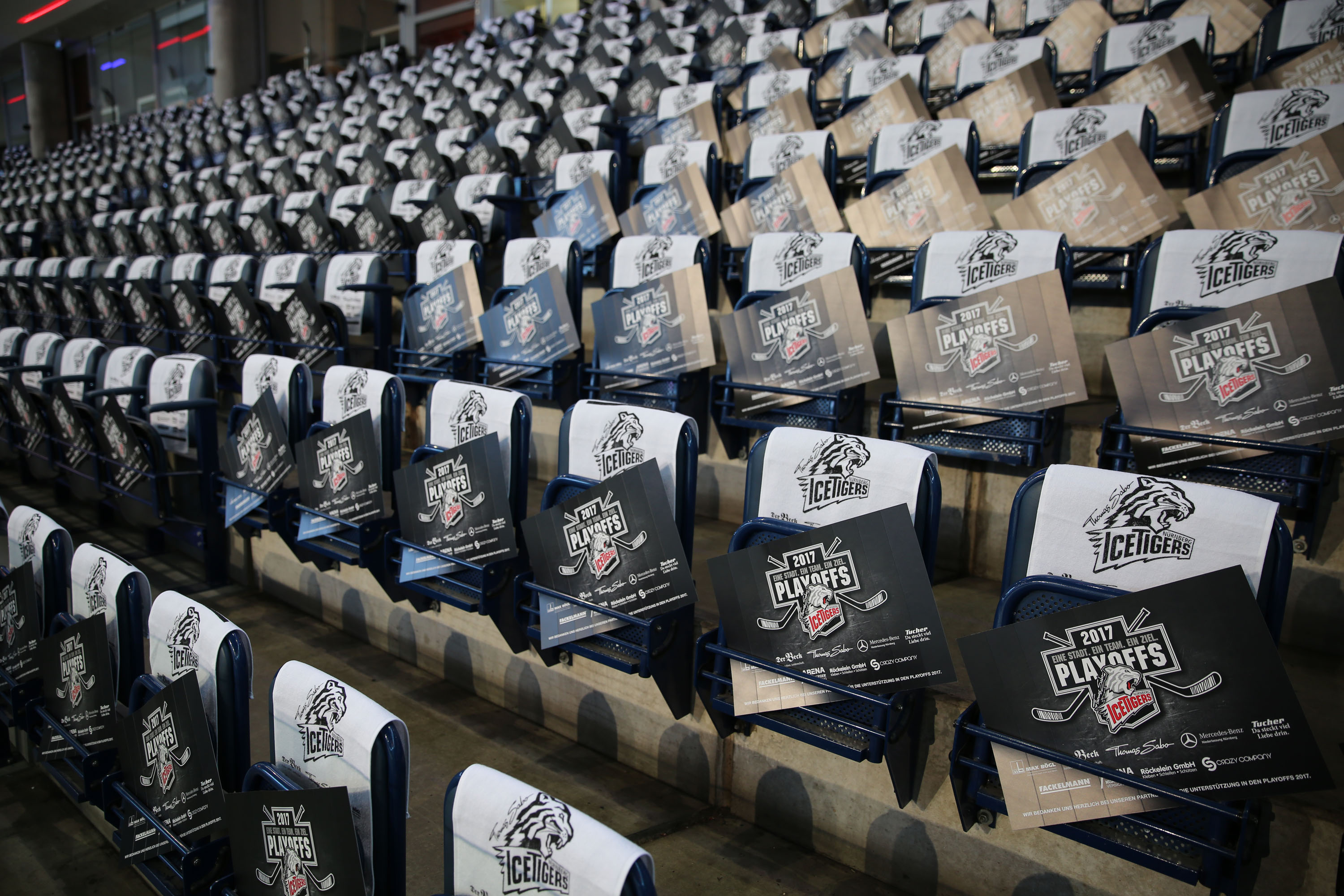 Wenn die ersten Fans die ausverkaufte Nürnberger Arena stürmen, werden sie schon sehnsüchtig von einem weißen Meer voller Handtücher erwartet. Die Rede ist von über 7500 „Playoff-Towels“, die vor dem Spiel bereitliegen, um das Publikum durch die hochemotionalen Playoffs zu begleiten. In mindestens 60 Minuten intensivstem Eishockey wird dann im Wechselbad der Gefühle wieder geknetet, reingebissen, der Schweiß von der Stirn gewischt und auf dem Höhepunkt, einem Tor der Ice Tigers, enthusiastisch fleißig zu Tausenden gewedelt.