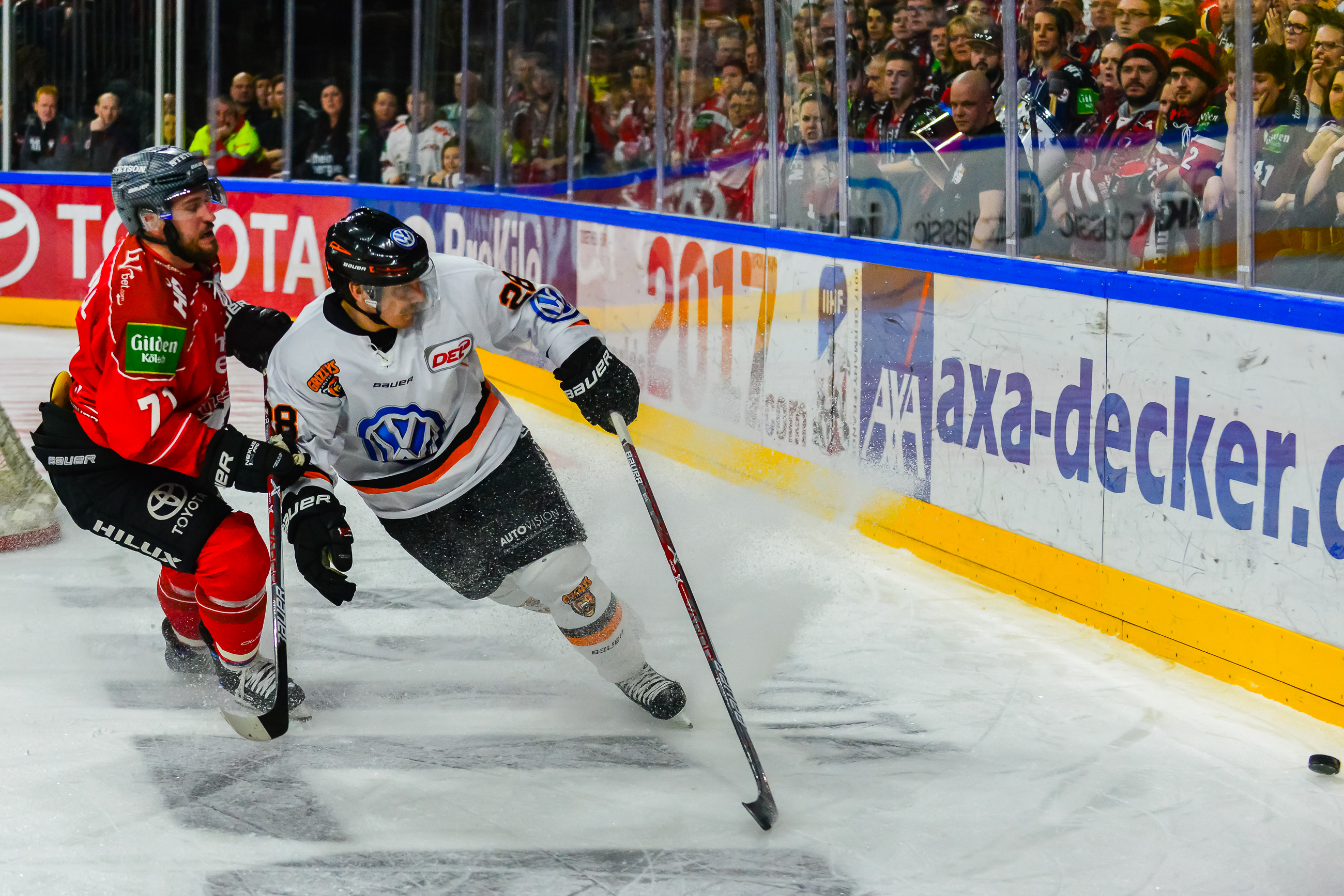 Die Grizzlys Wolfsburg kamen mit dem Schwung aus der letzten Partie in das 4. Playoff Viertelfinale und bestimmten weitgehend das erste Drittel. Köln tat sich von Beginn an