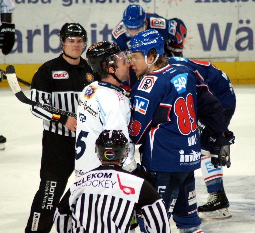 Drei Minuten später war es allerdings soweit. Dylan Yeo hatte nach Vorarbeit von Steven Zalewski und René Röthke die Scheibe erneut an Dennis Endras vorbei im Mannheimer Gehäuse untergebracht (8.). Die Kurpfälzer versuchten nun mit aller Macht den Anschlusstreffer zu erzielen, doch trotz aller Angriffsbemühungen war für die Mannen von Sean Simpson spätestens bei Matt Climie im Straubinger Tor Schluss. So langsam machte sich Frust breit, der von diversen Nettigkeiten seitens der Gäste nur noch zusätzlich angestachelt wurde. Vor allem David Wolf schien akuten Redebedarf zu haben. Am 0:2-Rückstand aus Mannheimer Sicht änderte das aber vor der ersten Pause herzlich wenig.