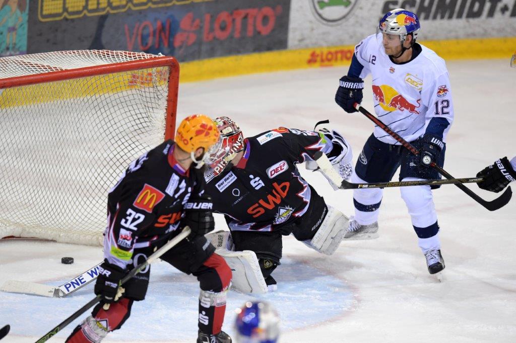 Im Schlussdrittel legte Brooks Macek zwei weitere Treffer nach. Erst schoss er die Roten Bullen per Unterzahlkonter in Führung (43.), dann komplettierte er nach Vorarbeit von Keith Aucoin seinen Hattrick (49.). Da Jeremy Welsh die Pinguins vier Minuten später in Überzahl auf ein Tor heranbrachte, wurde es noch einmal spannend. München verteidigte in der Folge jedoch stark und rettete den Vorsprung über die Zeit.