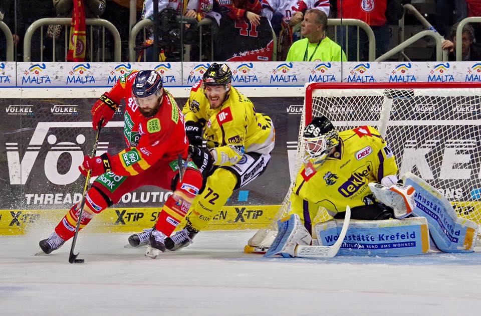 Die erste Hälfte der letzten 20 Minuten verbrachten die meisten DEG-Fans wohl an ihren Smartphones. Auf dem Eis tickte die Zeit runter, die Mannschaft führte mit zwei Toren, umso interessanter wurden die Ergebnisse aus den anderen Stadien. Hier sah es zwischenzeitlich gut aus. Vor allem die Straubing Tigers lagen vor heimischem Publikum gegen Schwenningen hinten, was unserer Mannschaft eine gute Chance auf eine Playoff-Teilnahme ermöglicht hätte. Spannend wurde es aber zunächst auch noch einmal bei uns in Düsseldorf. Die Krefelder machten in Person von Dragan Umicevic den Anschluss. Der Schwede hatte den Puck wunderbar um Niederberger herumgezogen und dann mit einem Rückhandheber vollendet. So wurden die letzten fünf Minuten zur Zitterpartie. Zu allem Überfluss musste Rob Collins kurz vor Ende auch noch auf die Strafbank. Doch die DEG-Defensive hielt Stand und alle drei Punkte blieben in der Karnevalshochburg Düsseldorf.
