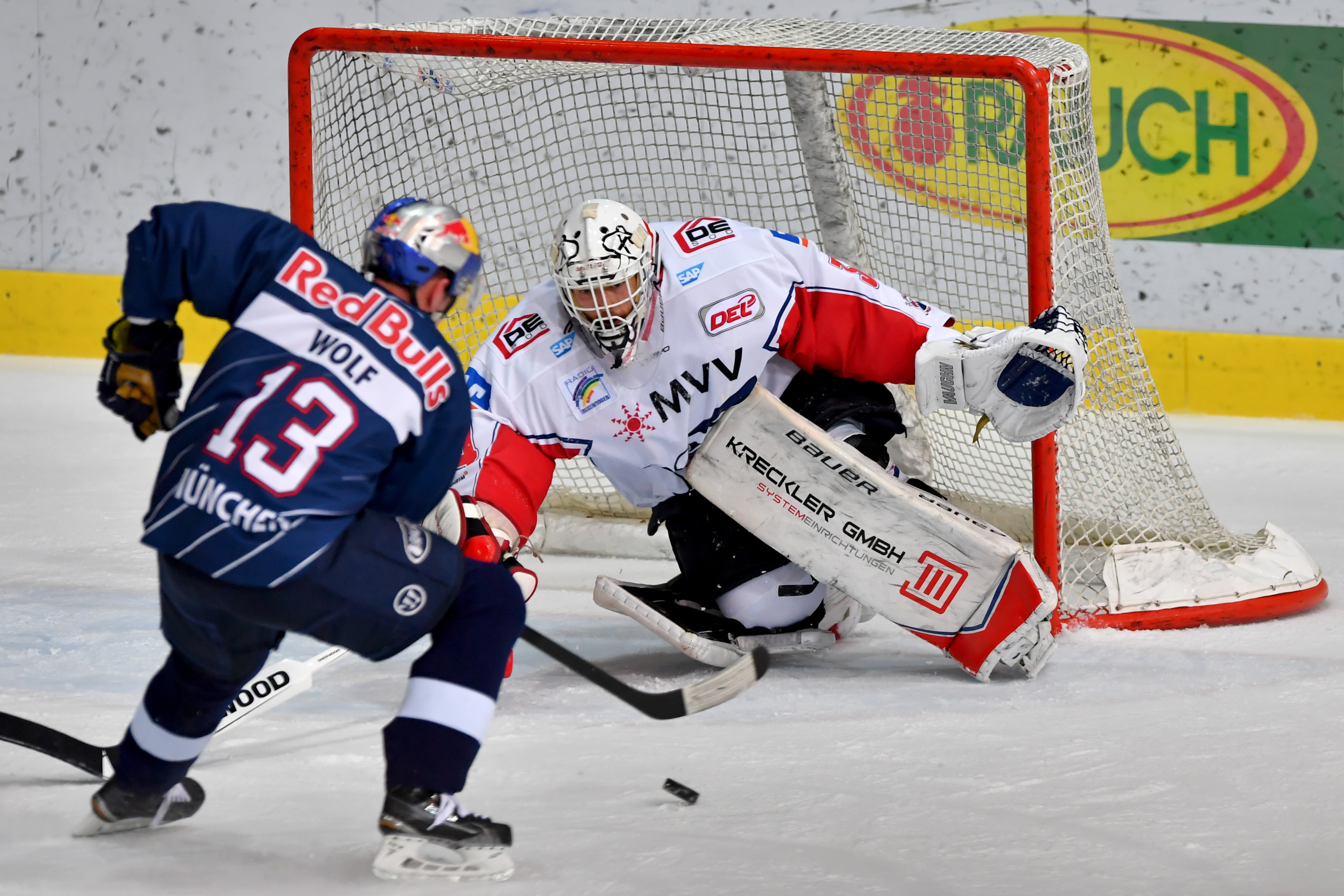 Nach dem Seitenwechsel drängten die Roten Bullen auf den Anschlusstreffer, sie scheiterten aber ein ums andere Mal an Drew MacIntyre. Der Adler-Torhüter parierte mehrfach stark – unter anderem gegen Mads Christensen (29.) und Frank Mauer (30.). In der 35. Minute musste sich MacIntyre dann doch geschlagen geben, als Brooks Macek in Überzahl direkt abzog und auf 2:3 verkürzte.