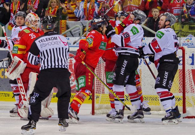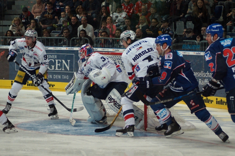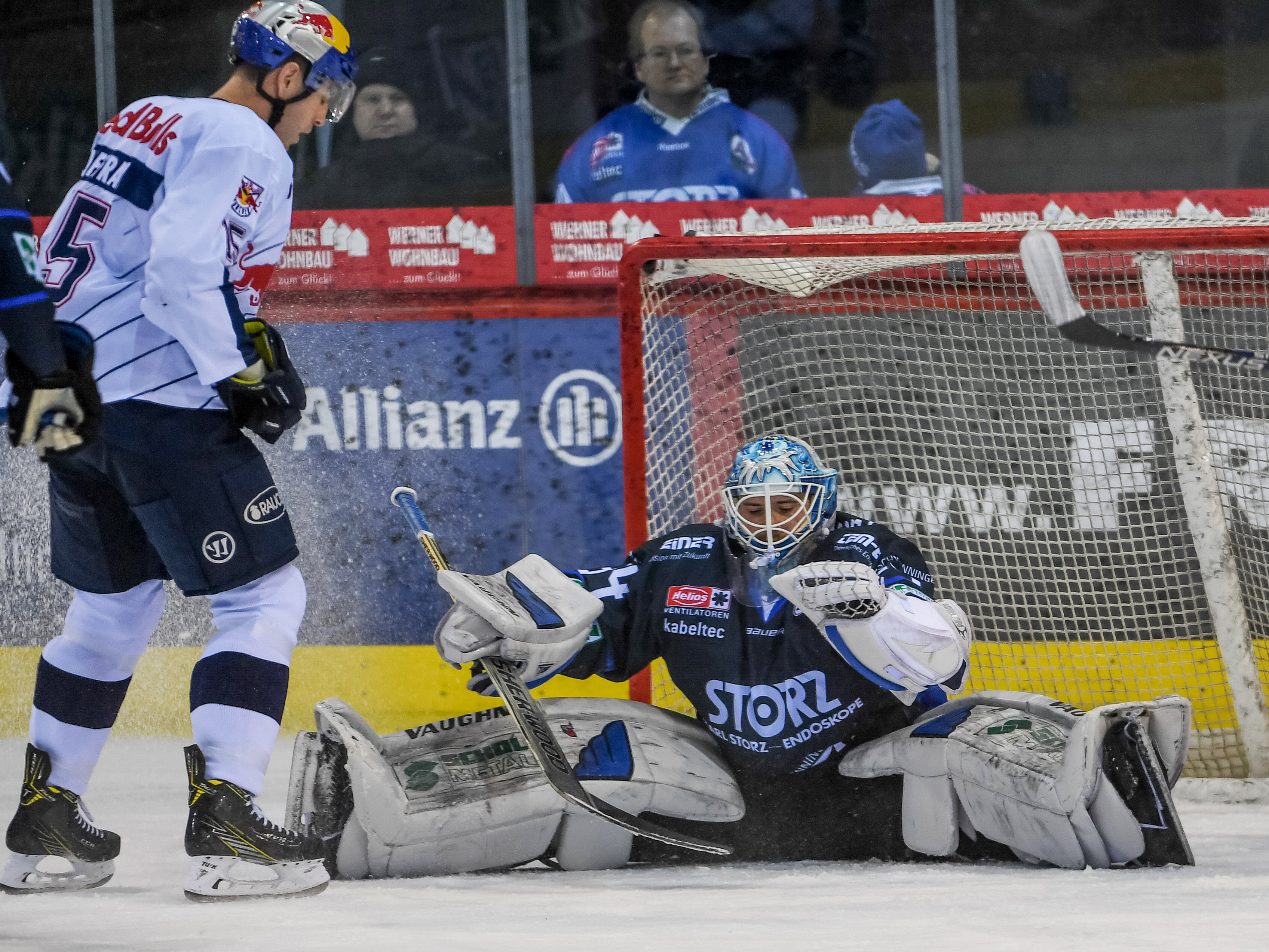 Hoch her ging es dann im Schlussabschnitt. Beide Teams drängten jetzt auf den entscheidenen Treffer. Den hatte Christoph Ullmann bereits in der 47. Spielminute auf der Kelle, doch Petri Vehanen im Tor der Eisbären rettete mit einem Hammersave. Nur eine Minute später musste er sich Ullmann dann aber doch geschlagen geben - 3:2 für die