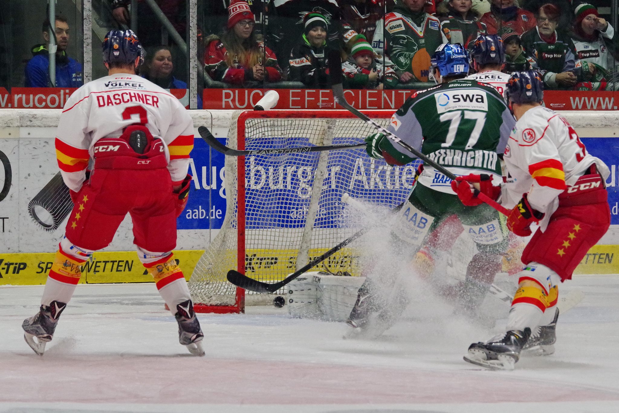 Auch im Mitteldrittel ein ähnliches Bild. Gefährliche Panther-Möglichkeiten, aber immer wieder Felix Bick teils akrobatisch zur Stelle. Auf der anderen Seite half der Pfosten den Gastgebern erneut. Dieses Mal gegen den Schuss von Tim Conboy. Und der US-Amerikaner wurde dann zur tragischen Figur. Einen Sonntagsschuss von Thomas Holzmann aus spitzem Winkel fälschte der Routinier wohl ins eigene Netz ab – auch wenn es selbst in den TV-Bildern nicht eindeutig zu erkennen war, wie der Puck den Weg über die Linie fand. Sicher war nur, dass es ein Treffer war. Nicht so in der nächsten Szene. Da waren letztlich fast alle Spieler im und um den Torraum der Augsburger versammelt. Es gab den Videobeweis – leider aber nicht den Anschlusstreffer für die DEG.