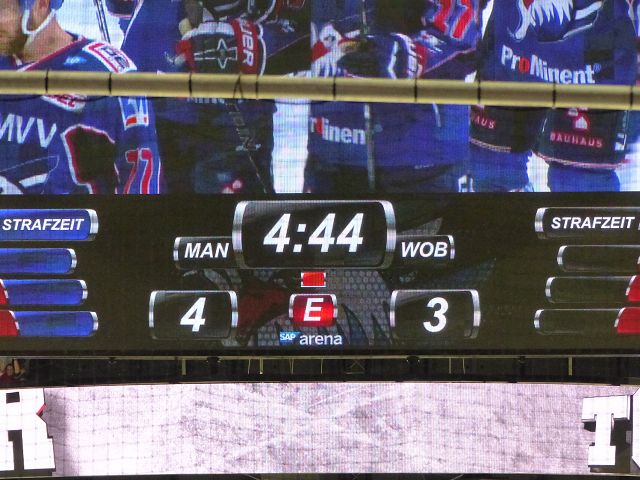 Im Schlussabschnitt versuchte Schwenningen noch einmal alles, um zum Ausgleich zu kommen, doch Mannheim verteidigte clever und ließ keinen Treffer zu. Chad Kolarik (54.) und Matthias Plachta (57.), die beide ebenfalls einen Doppelpack schnürten, sorgten schließlich für die Entscheidung. Marcus Kink (60.) sorgte mit einem Emptynetter aus dem Kuriositätenkabinett für den 7:3-Endstand aus Sicht der Adler. Dem Mannheimer Kapitän brach beim Schuss in der verwaiste Gehäuse der Schläger.