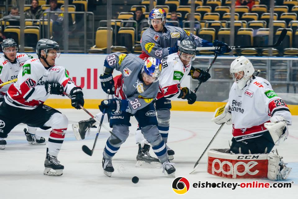 Daran änderte sich auch nach dem Seitenwechsel nichts. Köln stand defensiv weiterhin kompakt und ließ keine gefährlichen Abschlüsse der Roten Bullen zu. Im Spiel nach vorne setzten die Gäste aus der Domstadt auf Konter. Johannes Salmonsson (25.) und T.J. Mulock (31.) vergaben die besten Möglichkeiten der Haie. Auf der Gegenseite verpasste Michael Wolf den Ausgleich knapp. Münchens Kapitän setzte sich gegen einen Kölner Verteidiger durch, traf dann aus halbrechter Position aber nur die Unterkante der Latte (32.).