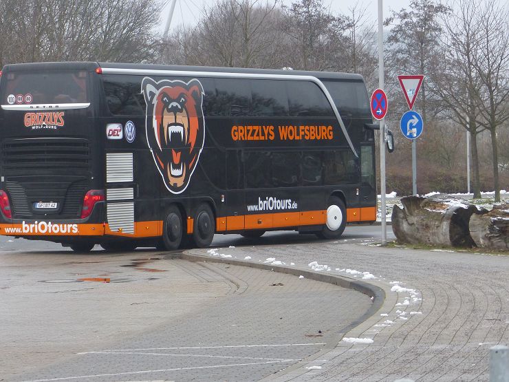 (DEL/Wolfsburg) (MM) Heute war für die Grizzlys Abreisetag nach Mannheim. Also fuhren wir nach Wolfsburg, um die Mannschaft zu verabschieden. Wieder hieß es, Vorbereitungen zu treffen. Block und Stifte einpacken, Kamera checken...Batterie noch voll? (Wir hatten ja Silvester in Berlin so viel geknipst). Trikots und Edding nicht vergessen. Vielleicht bekommt man ja noch eine fehlende Unterschrift auf das Trikot. Am Abreisetag ist ja alles viel entspannter als am Spieltag. Das hatte man uns schon bei der Vorbesprechung der Berichte gesagt.