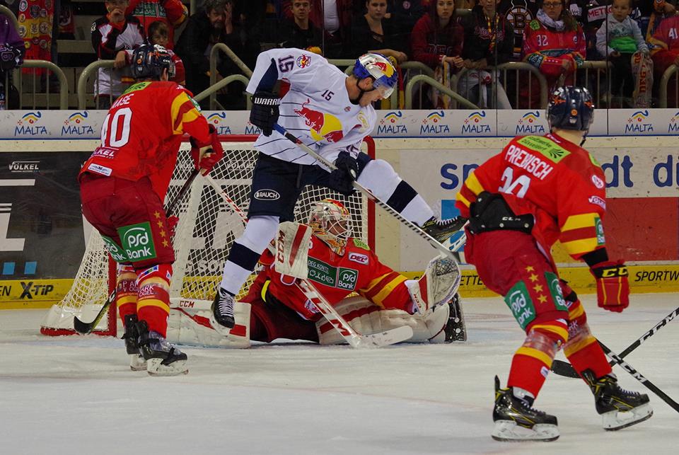 (DEL/München) PMDank einer überragenden Defensivleistung feierte der EHC Red Bull München vor 6.837 Zuschauern einen verdienten Auswärtssieg bei der Düsseldorfer EG. Nachdem die ersten beiden Drittel noch torlos endeten, erzielten die beiden Münchner Verteidiger Konrad Abeltshauser und Richie Regehr die Tore beim 2:0 (0:0|0:0|2:0). Besonders stark präsentierte sich Red Bulls-Torhüter Danny aus den Birken, der für den ersten Shutout der Saison sorgte.