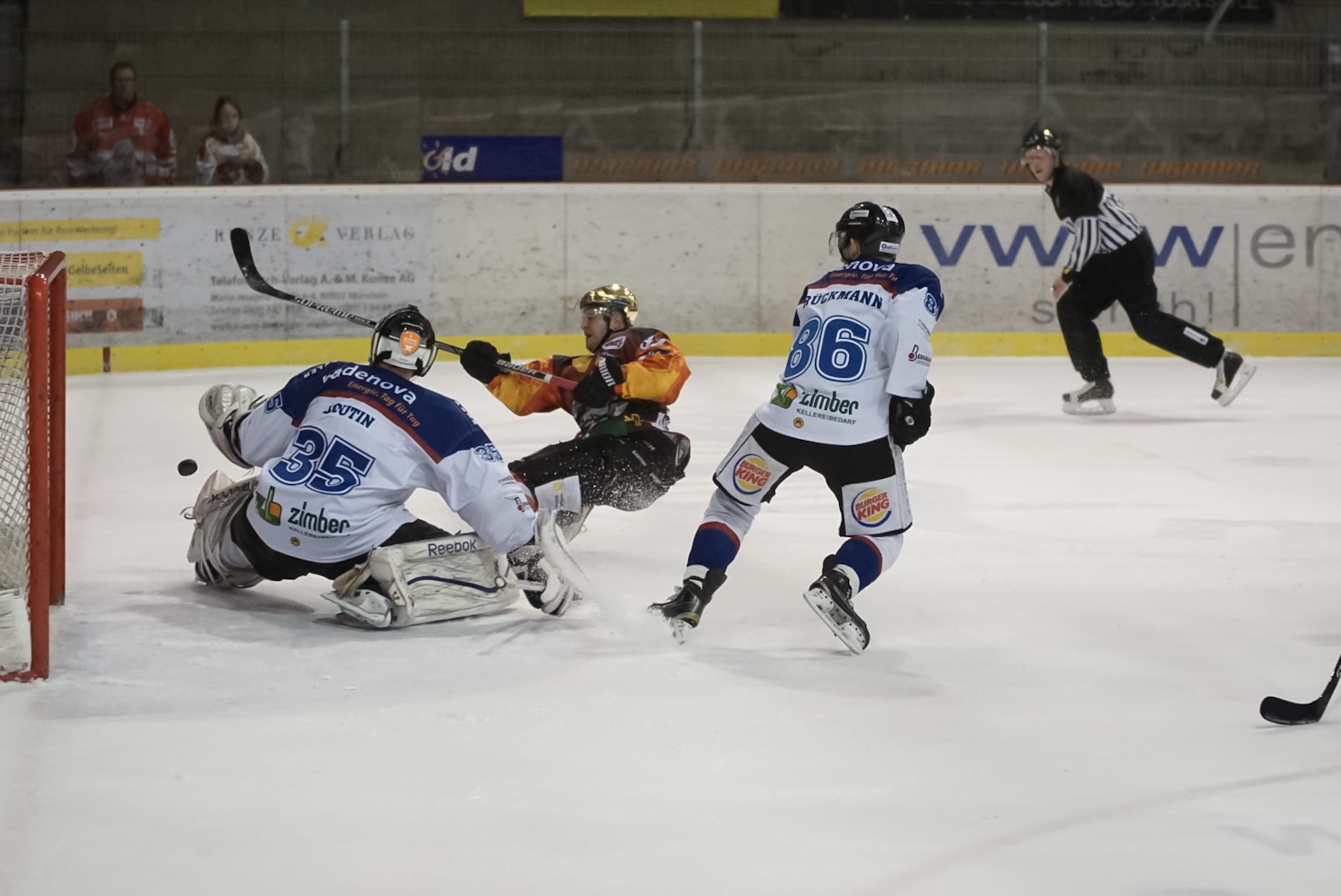 (DEL2-Kaufbeuren) Die Joker vom ESV Kaufbeuren verlieren im Penalty Schießen mit 1:2 (0:0/1:0/0:1) und verlieren so zwei wichtige Punkte im Endspurt um das Erreichen der Pre-Playoffs. Die 1624 Zuschauer sahen am Sonntagabend in der altwürdigen Sparkassen Arena am Berliner Platz Magerkost was zumindest die Tore betrifft. Das Spiel selbst gab allerdings mehr her, als was zum Schluss der Spielstand aussagt.