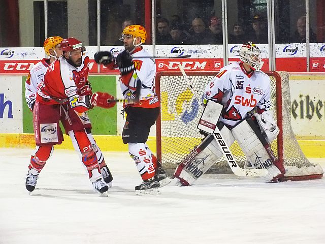 Das 2.Drittel begannen die Westsachsen mit einem kleinen Sturmlauf auf Gerald Kuhn. Man hatte fast den Eindruck,als spiele man mit einem Mann mehr, doch leider konnte in dieser Druckphase kein Tor erzielt werden. Nach einigen Minuten wurde das Spiel wieder etwas ausgeglichener und auch Ryan Nie bekam wieder Arbeit. Die Tore schienen an diesem Abend aber einfach wie vernagelt. Bremerhaven wollte dann auch wieder etwas mehr fürs Spiel tun, versuchte durch schnelle Spielzüge ins Drittel der Eispiraten zu kommen und übernahmen ab der 28. Spielminute das Spiel. Doch auch der REV versäumte es in der Druckphase Tore zu schießen, auch wenn dabei einmal der Pfosten und einmal die Latte die Helfer für Ryan Nie waren. Beide Teams durften sich in diesen 20 Minuten im Powerplay zeigen, doch auch in Überzahl wollte der Puck nicht ins Tor. Kurz vor Ende des Drittels hatte Eric Lampe die beste Chance des Abends, als er allein auf den Goalie von Bremerhaven zulief. Kuhn hielt den Schuss und auch die Aktion auf deer Gegenseite sollte nichts mehr am Spielstand von 0:0 nach 40 Minuten ändern.